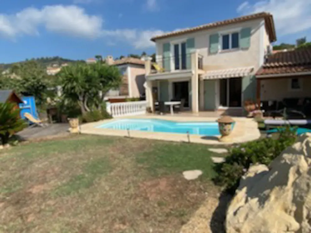 Exclusivité Colline des termes villa Piscine plein sud au calme dans résidence sécurisée quartier résidentiel, construction de 2001 Antisismique. Au rez de chaussée une entrée avec toilette et placard donnant sur une grande pièce à vivre de plus de 40m2 avec cuisine américaine salon salle à manger avec 2 doubles portes vitrées donnant sur une grande terrasse idéale pour recevoir , la piscine et le jardin tout de plein pied, ce qui est rare sur la colline des termes ! Depuis l'entrée accès au garage de 21m2 carrelé et isolé possibilité de faire soit un studio soit une chambre de maitre avec sa ... Lire la suite